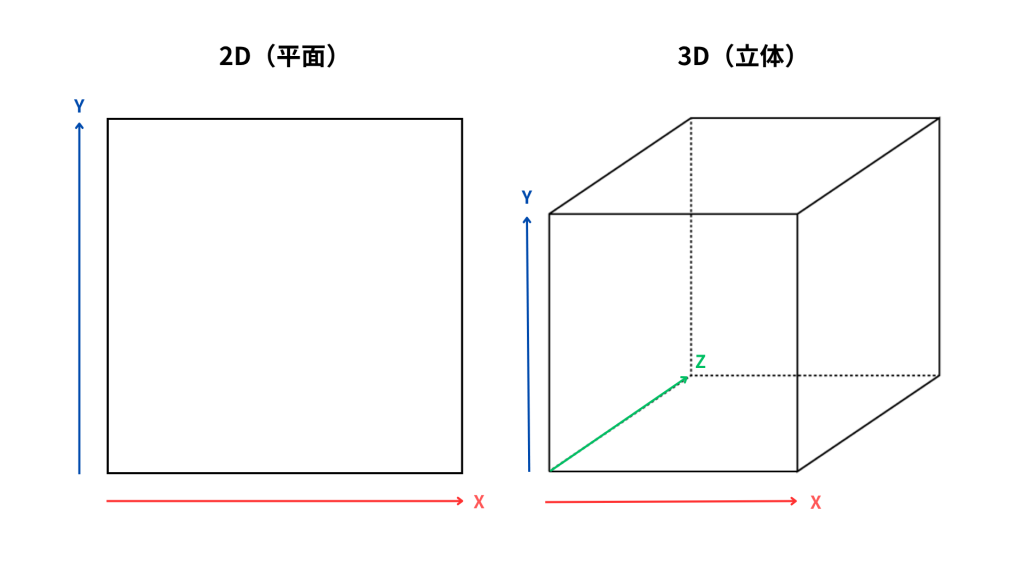 表現する軸 3つの軸 (三次元) 2つの軸 (二次元)
