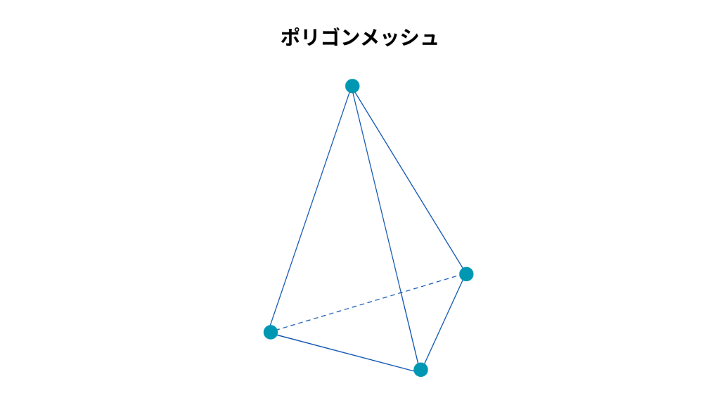 3Dモデルの形は、小さな多角形(ポリゴン)が集まった「メッシュ」という網状の構造でできています。