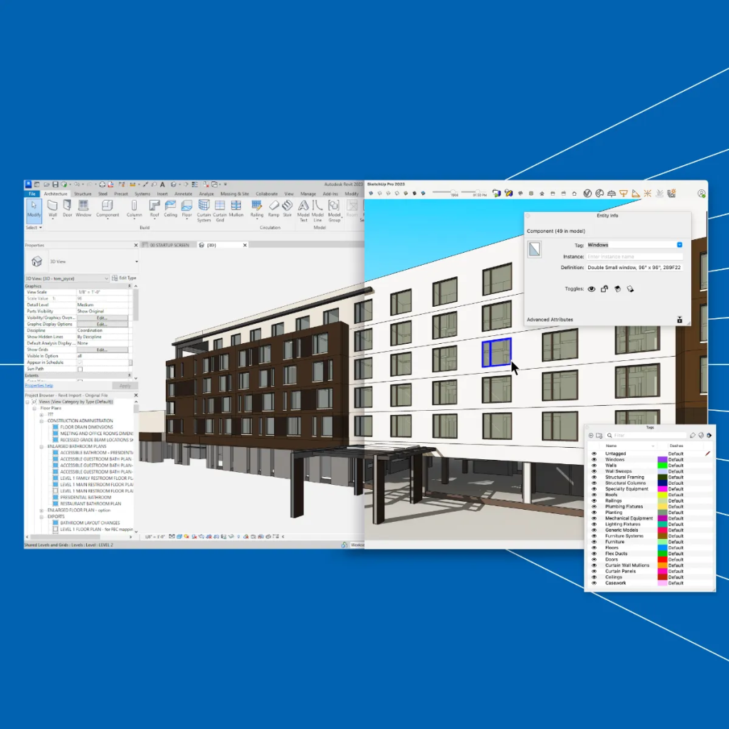 特にSketchUp StudioとSketchUp Pro Advanced Workflowsの2つのプランには、Revitファイル(.rvt)を直接インポートできる『Revit Importer』機能が付属します。これにより、変換プロセスを簡略化し、BIMデータと SketchUp モデルのハイブリッド運用をよりスムーズに進めることが可能です。