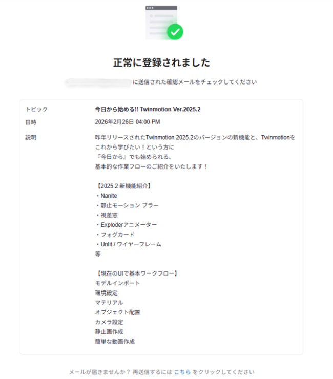 ※メールの確認ができない方は、迷惑メールフォルダに振り分けられていないかご確認ください。